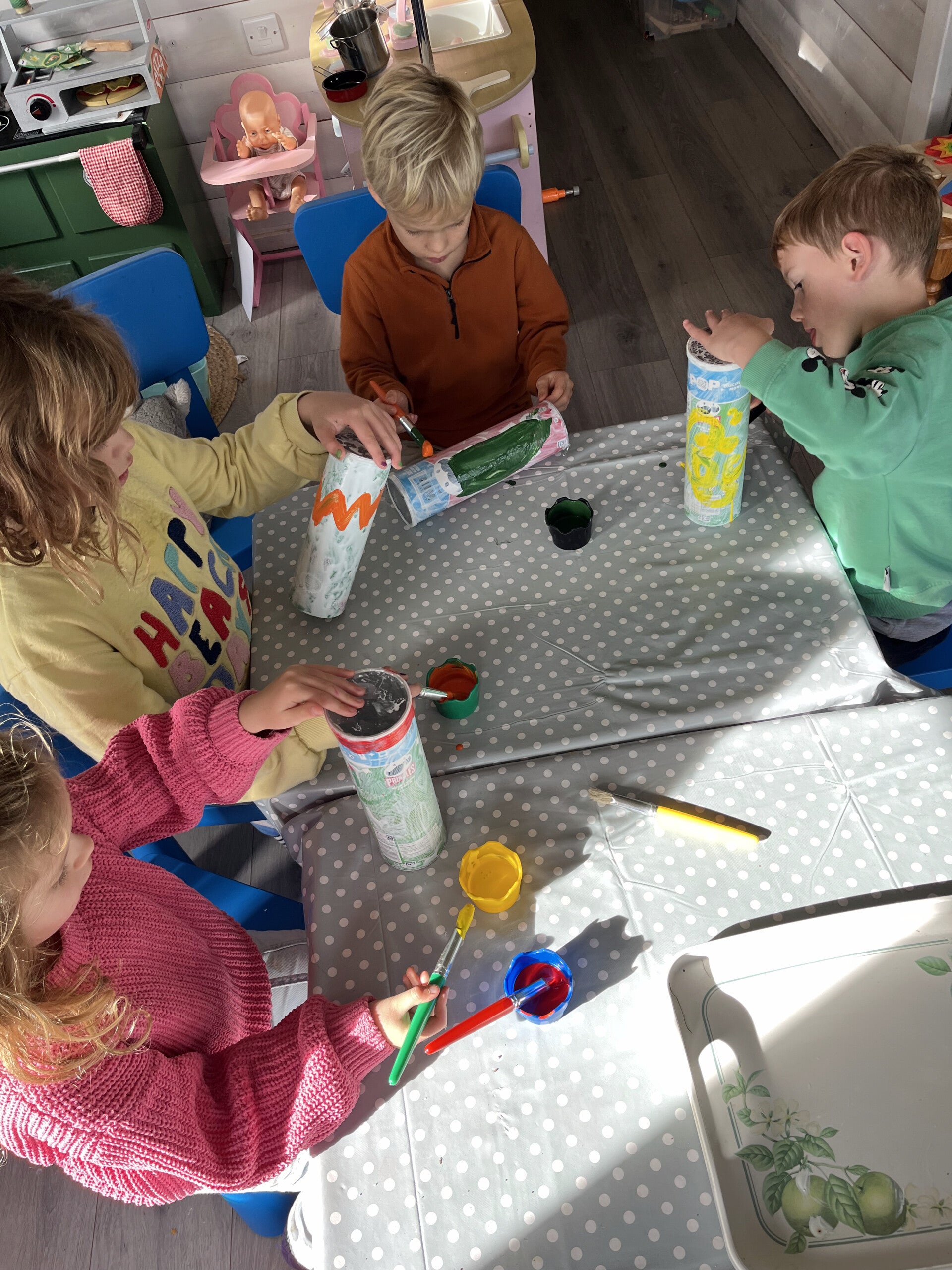 Every day at Squirrels Childminding is an adventure tailored to individual interests and age ranges. From junk modelling rockets with older children to splodging paint into egg boxes with the little ones, creativity thrives. We spend ample time exploring the natural world, building rain gauges, and respecting wildlife. Baking sessions teach counting and patience, with older children proudly helping their younger friends – fostering responsibility and teamwork.